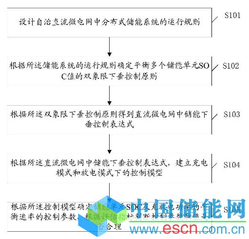 本發(fā)明公開了一種自治直流微電網(wǎng)的分布式儲能SOC雙象限下垂控制方法,包括:設計自治直流微電網(wǎng)中分布式儲能系統(tǒng)的運行規(guī)則;根據(jù)所述儲能系統(tǒng)的運行規(guī)則確定平衡多個儲能單元SOC值的雙象限下垂控制原則;根據(jù)所述雙象限下垂控制原則得到直流微電網(wǎng)中儲能下垂控制表達式;根據(jù)所述直流微電網(wǎng)中儲能下垂控制表達式,建立充電模式和放電模式下的控制模型;根據(jù)所述控制模型確定儲能單元SOC及充放電功率的平衡速率的控制參數(shù),根據(jù)評估指標判斷控制參數(shù)取值是否合理。本發(fā)明提高了儲能單元的利用效率、延長其使用壽命,運行更高效。