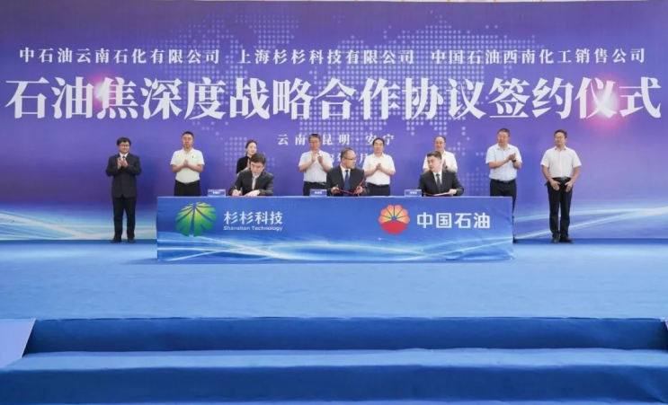 5月10日,杉杉科技與中石油云南石化公司(簡(jiǎn)稱“云南石化”)、中國(guó)石油西南化工銷售公司(簡(jiǎn)稱“西南化銷”)在云南杉杉項(xiàng)目現(xiàn)場(chǎng)簽署合作協(xié)議,合作三方將在石油焦等人造石墨原材料領(lǐng)域展開深度合作。