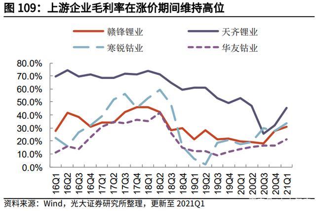 (2)2017-18 年,政策和技術(shù)方向開始逐步三元材料傾斜,對(duì)氫氧化鋰的快速 拉動(dòng),氫氧化鋰的價(jià)格維持在 16 萬(wàn)元/噸,硫酸鈷的漲價(jià)也是始于 2017 年初, 在 2018 年達(dá)到頂峰。