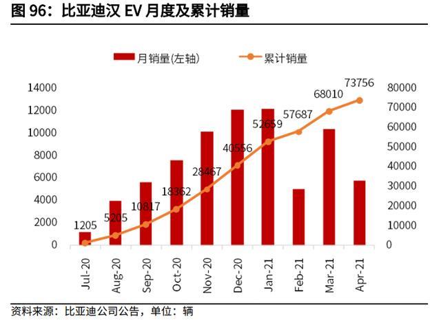 此外, 葉片電池變長(zhǎng)變薄,其表面積增加,整體散熱更好。電池的短路電路相 對(duì)較長(zhǎng),產(chǎn)生的熱量較少,結(jié)合比亞迪的綜合高溫“陶瓷電池”技術(shù),刀片電池 的安全性得到了極大提高,所以刀片電池的性能是非常完美的,首次搭載該刀片 電池的“比亞迪漢 EV”車型自去年 7 月上市以來(lái)銷量喜人。