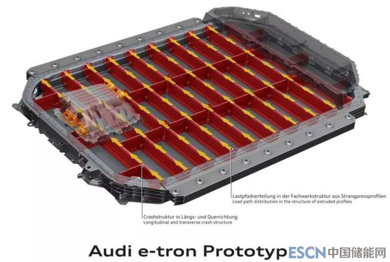 托盤的鋁制吊耳固定點應數量多,而且布置均勻,如下圖奧迪 e-tron鋁托盤案例所示。