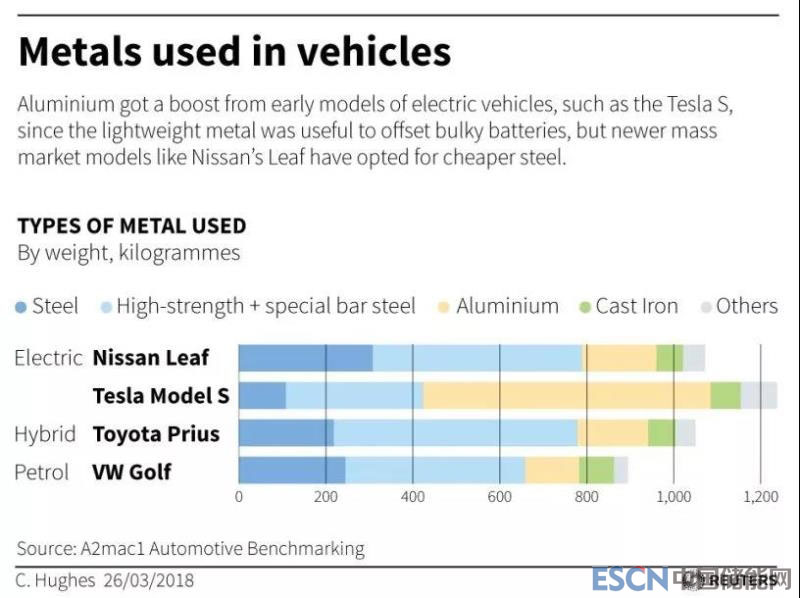 但其他大眾化車型選用材料中分量最高的卻是享有成本優(yōu)勢的高強鋼。例如日產Leaf、大眾高爾夫、豐田普銳斯,它們更傾向于在高強鋼板和異形鋼下功夫。