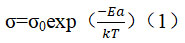 由于聚合物電解質(zhì)離子傳輸機(jī)制的復(fù)雜性,其電導(dǎo)率隨溫度變化的關(guān)系不能通過一個(gè)物理模型簡(jiǎn)單地描述,其一般遵循兩種機(jī)理Arrhenius型或Vogel-Tamman-Fulcher(VTF)型或是兩者的結(jié)合。Arrhenius型用公式(1)表示: