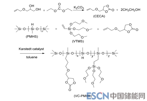 圖5 高鹽型聚硅氧烷基復(fù)合電解質(zhì)合成路徑