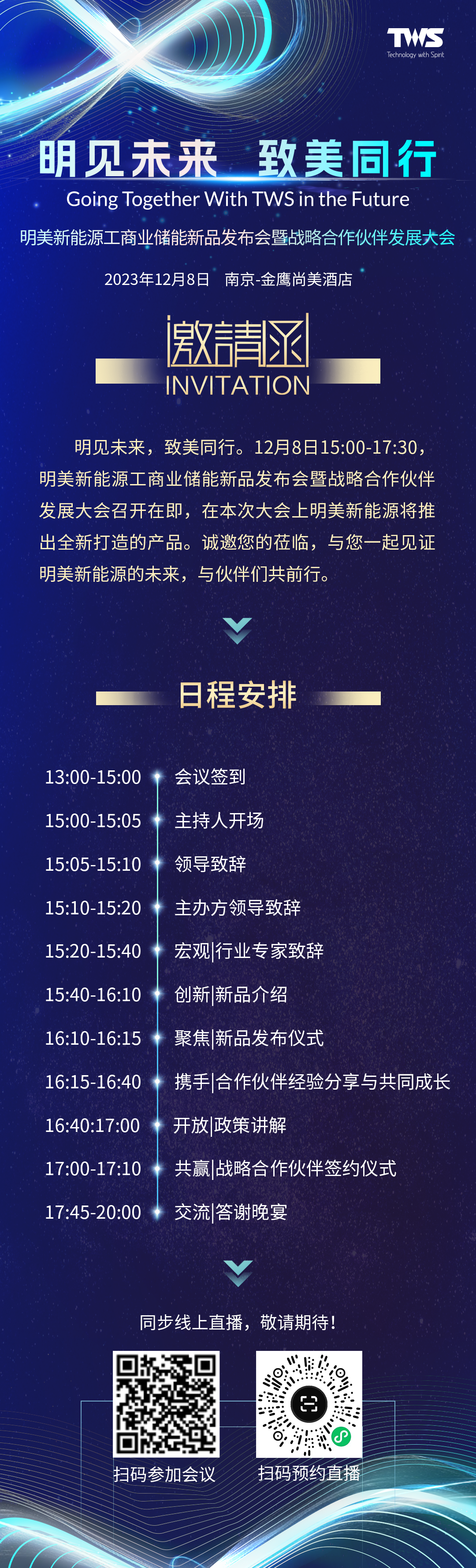 12月8日,南京,明美新能源工商業(yè)儲(chǔ)能新品發(fā)布會(huì)暨戰(zhàn)略合作伙伴發(fā)展大會(huì),期待您的蒞臨!