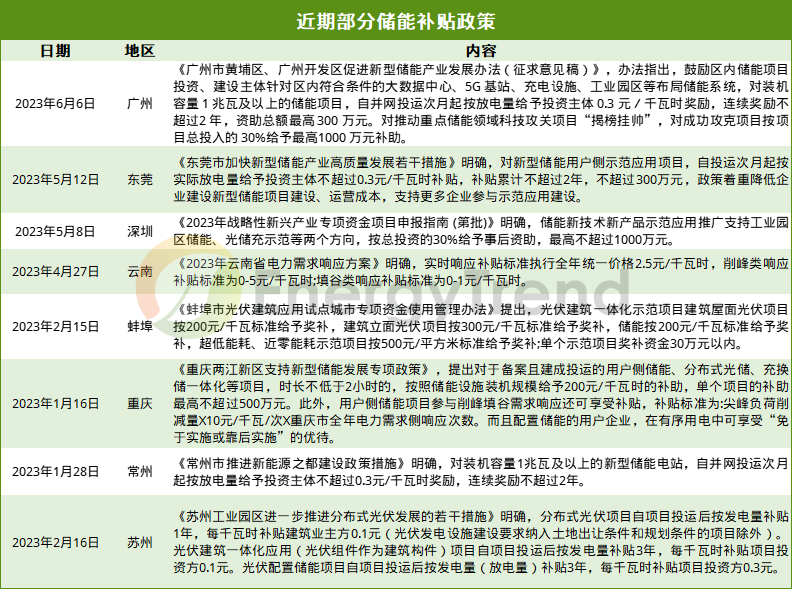 儲(chǔ)能各地補(bǔ)貼