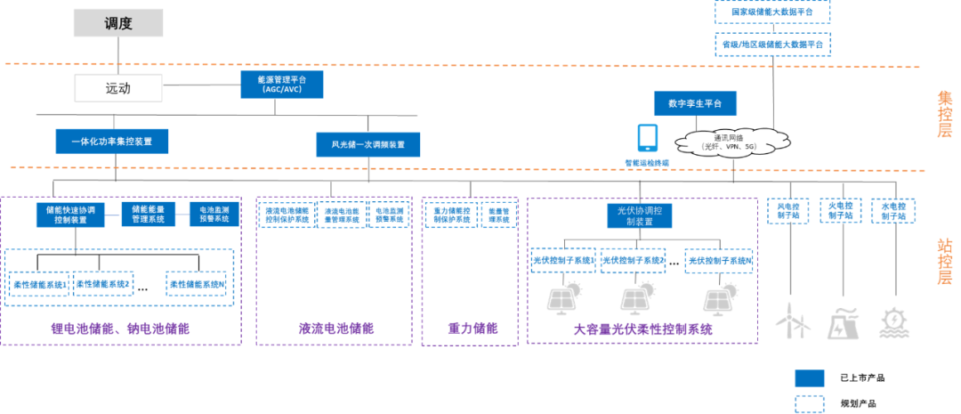公司從集控層到站控層總體架構(gòu)綜合考慮,采用硬件平臺、軟件平臺標(biāo)準(zhǔn)化、應(yīng)用定制化的研發(fā)模式,推出了包括:一體化功率集控裝置、風(fēng)光儲一次調(diào)頻裝置、儲能快速協(xié)調(diào)控制裝置和光伏快速協(xié)調(diào)控制裝置四款控制保護(hù)產(chǎn)品。四款產(chǎn)品精準(zhǔn)應(yīng)對GWh級大型新能源基地對電源控制的要求,實現(xiàn)多場景覆蓋、高度智能化、高速度響應(yīng)和高精準(zhǔn)錄波的性能特點(diǎn),有效提高新能源場站調(diào)峰調(diào)頻能力、計劃跟蹤能力、電壓主動智能能力,并加強(qiáng)平抑新能源場站波動能力,促進(jìn)新能源最大化消納。