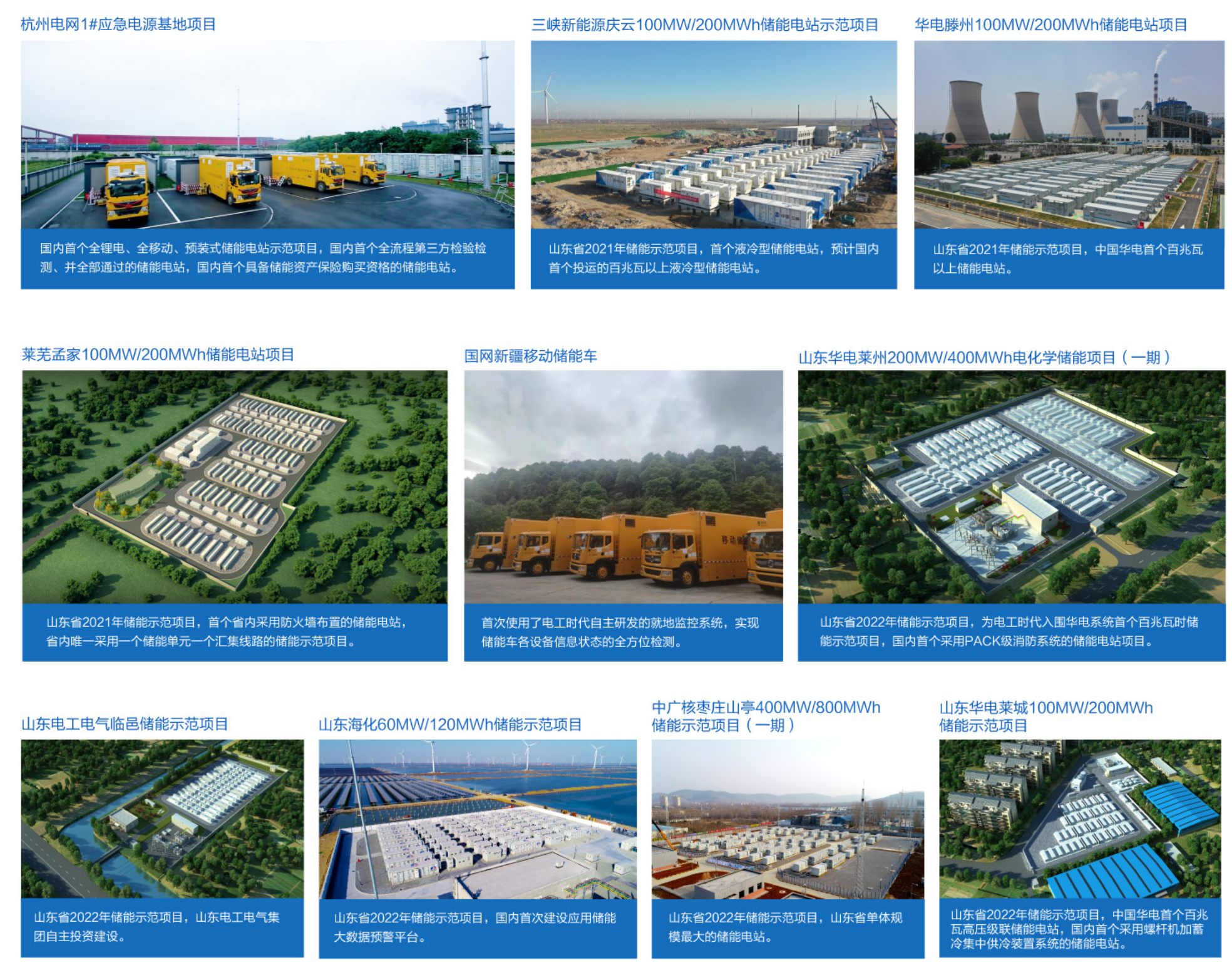 2018年以來,電工時代深耕智慧儲能領(lǐng)域,投身“碳達(dá)峰、碳中和”行動,為推進(jìn)我國構(gòu)建清潔低碳、安全高效能源體系貢獻(xiàn)力量,擁有13個100MWh及以上規(guī)模規(guī)模儲能電站,其中7個100MWh及以上規(guī)模儲能電站已投運(yùn)。先后在山東、湖北、甘肅、浙江、廣東、重慶等地承接儲能重點(diǎn)示范項目。并創(chuàng)下國內(nèi)多項“首個”:成為國內(nèi)為數(shù)不多具有3個百兆瓦級以上儲能系統(tǒng)集成業(yè)績的廠家之一;國內(nèi)首個推出1500V高壓儲能系統(tǒng)并工程應(yīng)用;國內(nèi)首個投運(yùn)的全鋰電、全移動、預(yù)裝式儲能電站;國內(nèi)首創(chuàng)移動儲能車;國內(nèi)最早通過中國電科院認(rèn)證;國內(nèi)首個 1500V液冷電池商集裝箱產(chǎn)品;國內(nèi)首個通過全流程第三方檢驗檢測、具有儲能資產(chǎn)保險購買資格的儲能電站;國內(nèi)首個百兆瓦級高壓級聯(lián)儲能電站,山東省首家、也是唯一一家儲能技術(shù)共享實驗室。