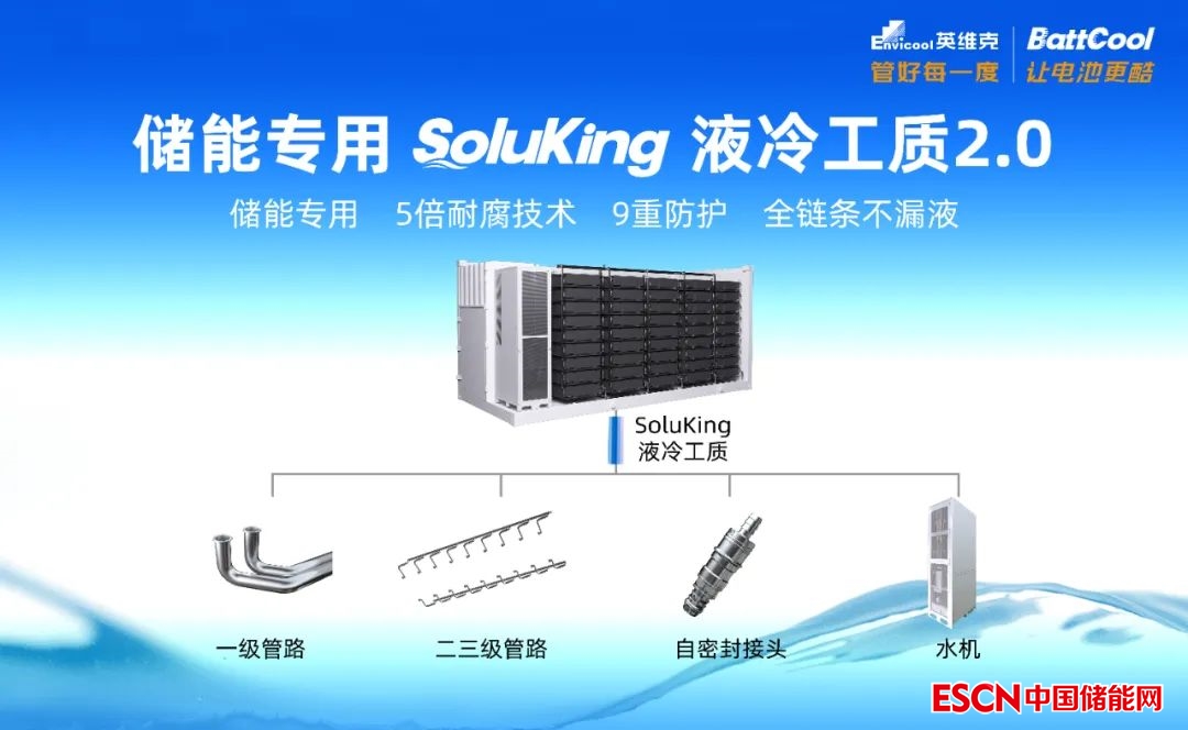 英維克SoluKing液冷工質(zhì)2.0針對液冷儲能系統(tǒng)的高耐腐等要求,應(yīng)用5倍耐腐技術(shù),提供9重防護(hù)手段,包括全鏈條材料分析、全鏈條金屬兼容、全鏈條非金屬兼容、防氣泡、防菌、防垢、無損防腐、防快速消耗、無損換熱等,耐腐性能達(dá)到傳統(tǒng)車用防凍液的5到10倍以上,確保液冷工質(zhì)高度匹配儲能液冷系統(tǒng),穩(wěn)定高效。