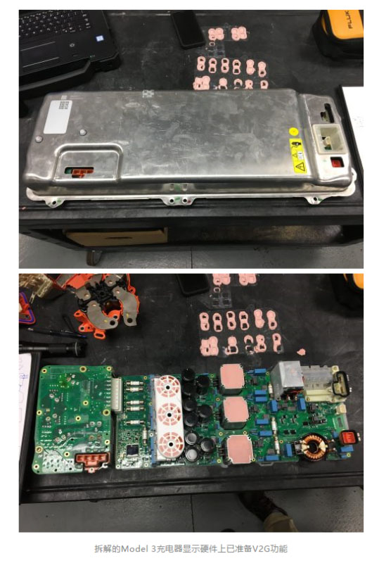 一位幫助特斯拉競爭對手對Model 3進行拆解工作的電氣工程師Marco Gaxiola,對特斯拉的充電器進行了反向工程,發(fā)現(xiàn)特斯拉充電器可以進行雙向充電。他說Model 3充電器的設(shè)計是完全雙向的。這意味著特斯拉自帶的充電器已經(jīng)可以實現(xiàn)從AC轉(zhuǎn)DC和從DC到AC的逆變功能,也就是具備V2G功能。