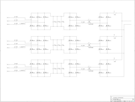 他還具體描述了特斯拉車載充電器的設(shè)計,雙向充電設(shè)計在Model 3充電器的同一塊PCB板上重復了3次。冗余設(shè)計是為了保證即使其中一個電路出現(xiàn)故障,也可以確保正常工作。此外,它是三相設(shè)計,因此可以在全球范圍內(nèi)使用。
