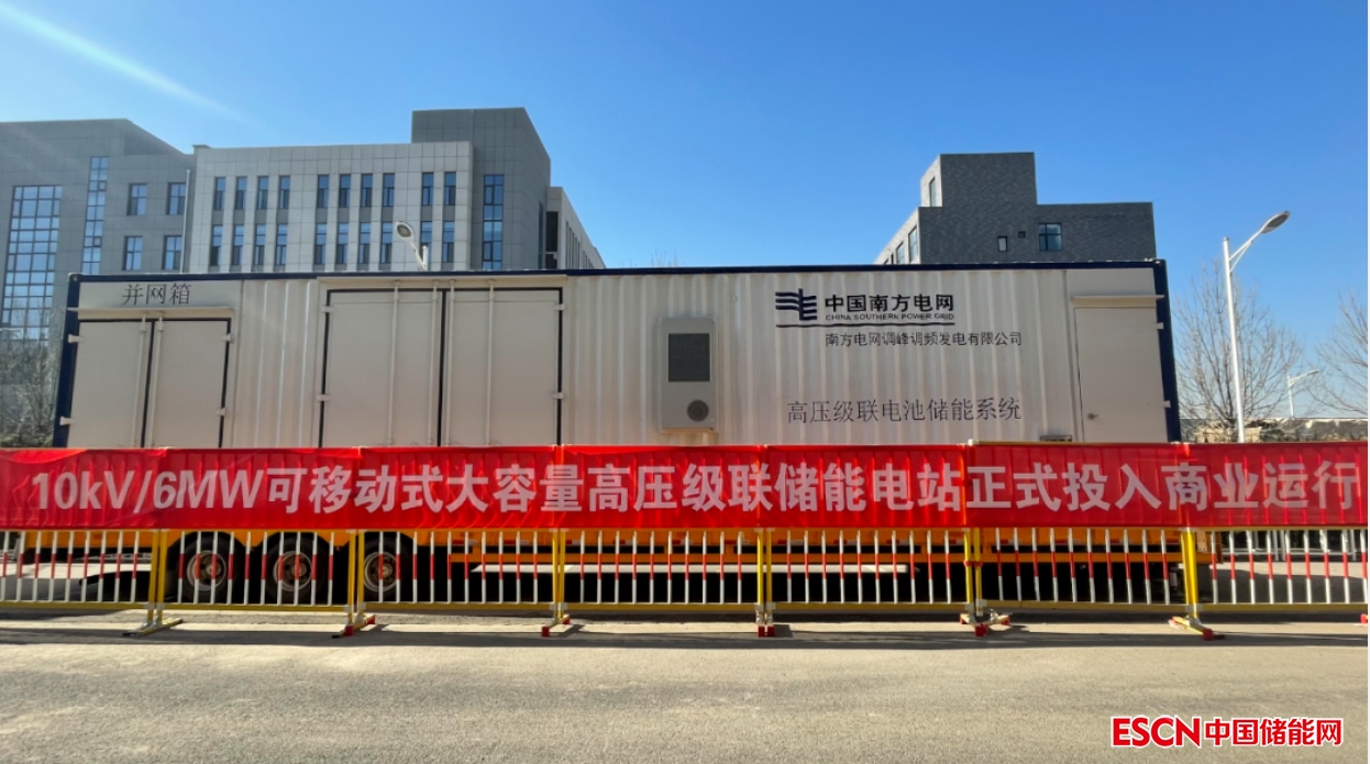 中國儲能網(wǎng)訊:1月1日,由南方電網(wǎng)儲能股份有限公司投資建設(shè)的我國首個移動式大容量高壓級聯(lián)電池儲能電站(10kV/6MW),在河北保定正式投入商業(yè)運行。