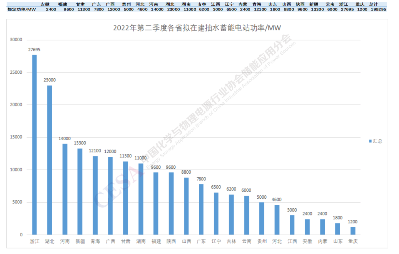 圖8 2022Q2各省份擬在建抽水蓄能電站裝機(jī)功率分布