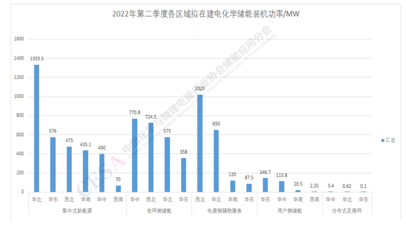 圖3 2022Q2各區(qū)域電化學(xué)儲能裝機(jī)功率分布