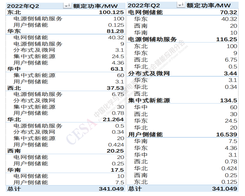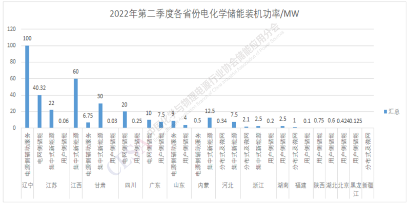 表2 2021Q2-2022Q2電化學(xué)儲能各省份應(yīng)用場景裝機(jī)功率分布