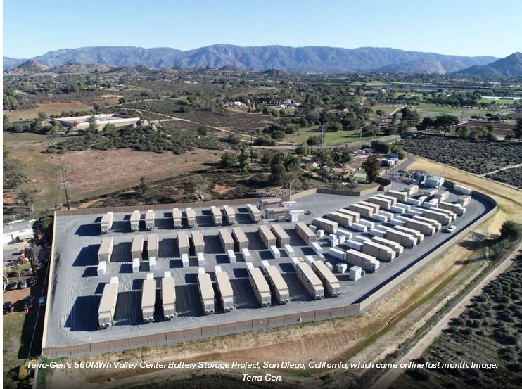 Terra-Gen公司位于加利福尼亞州圣迭戈的560MWh Valley Center電池儲(chǔ)能項(xiàng)目,該項(xiàng)目于上個(gè)月上線運(yùn)營。