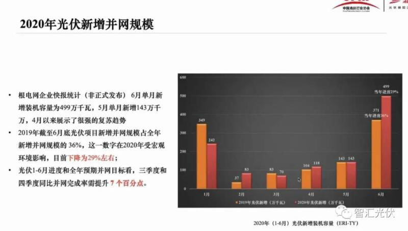 1)2020年上半年新增11.5GW,與去年同期相當,預期占全年的29%;下半年預期新增近30GW,全年光伏新增裝機達到40GW!