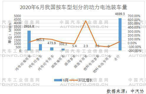 中國儲能網(wǎng)訊:2020年6月,中國動力電池裝車量恢復環(huán)比增長態(tài)勢,裝車量4.7GWh,環(huán)比大增34%;完全仰賴純電動客車及專用車的增長。新能源乘用車裝車量環(huán)比小幅上漲。
