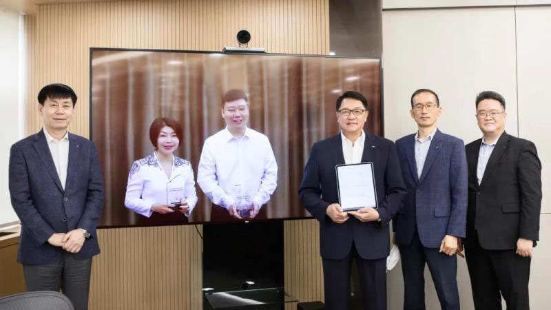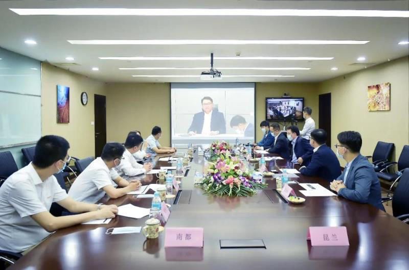 因疫情原因無法面對面溝通,LS電氣集團會長具滋均在韓國總部LS大廈,南都電源朱保義總裁和昆蘭于忠蘭董事長則在LS電氣上??偛浚ㄟ^在線視頻方式進行“跨國云簽約”。