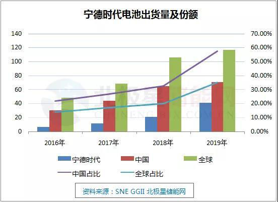 自2011年曾毓群等ATL高管攜原動力電池部門獨立,創(chuàng)辦寧德時代新能源科技有限公司CATL,短短六年時間裝機量排名超越比亞迪,并于2018 年在深交所創(chuàng)業(yè)板上市。直到2019年裝機32.5GWh、連續(xù)第三年位居全球動力電池裝機之首,電池系統(tǒng)在國內(nèi)市占率約57.7%、國際市占率約35%以上,寧德時代的版圖仍在不斷擴張。