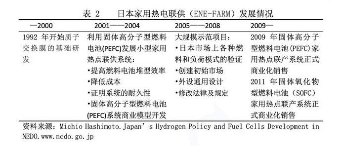 ENE-FARM是日本氫能在居民住宅中應(yīng)用的嘗試,通過(guò)將氫氣注入燃料電池中發(fā)電,同時(shí)用發(fā)電時(shí)產(chǎn)生的熱能來(lái)供應(yīng)暖氣和熱水,形成微型熱電聯(lián)供系統(tǒng)。目前主要有固體高分子型燃料電池(PEFC)和固體氧化物型燃料電池(SOFC)兩種類(lèi)型,生產(chǎn)700瓦和1000瓦發(fā)電量的產(chǎn)品,能夠滿足部分電力需求和全部的熱水需求。早在1992年日本就開(kāi)始了針對(duì)燃料電池的質(zhì)子交換膜進(jìn)行基礎(chǔ)研發(fā),探索氫能在住宅中的應(yīng)用。2001年開(kāi)始進(jìn)行小規(guī)模固體高分子型燃料電池(PEFC)的研發(fā)和示范,2009年,固體高分子型燃料電池(PEFC)熱電聯(lián)供系統(tǒng)正式上市銷(xiāo)售,2011年固體氧化物型燃料電池(SOFC)熱電聯(lián)產(chǎn)系統(tǒng)也上市銷(xiāo)售。
