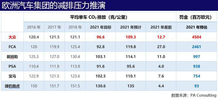 然而,歐洲2021年將全面實(shí)施最嚴(yán)減排法規(guī),達(dá)摩克里斯之劍懸在了頭頂。為了不挨罰,大家必須猛干快上電動(dòng)車,可即便如此,多數(shù)車企大概率還是完不成減排任務(wù)。
