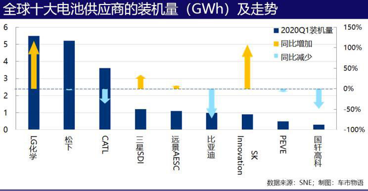 今年第一季度,全球動(dòng)力電池裝機(jī)量同比下降了14.2%,中國電池商的裝機(jī)量下降了54.3%,LG化學(xué)和松下聯(lián)手將寧德時(shí)代趕下了第一的寶座。變天了!