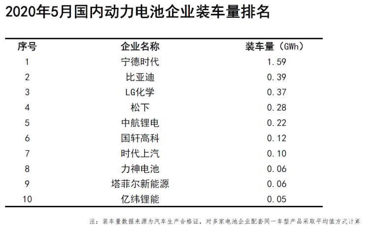 中國(guó)儲(chǔ)能網(wǎng)訊:近日,中國(guó)汽車動(dòng)力電池產(chǎn)業(yè)創(chuàng)新聯(lián)盟發(fā)布最新數(shù)據(jù)顯示,2020年5月,我國(guó)動(dòng)力電池裝車量3.5GWh,同比下降38.3%,環(huán)比下降2.3%。電池裝車量排名前三的企業(yè)分別是寧德時(shí)代、比亞迪和LG化學(xué)。