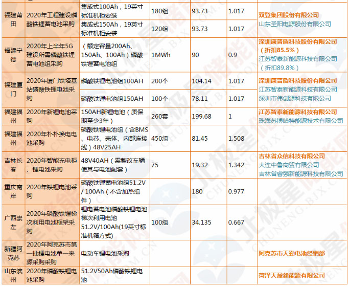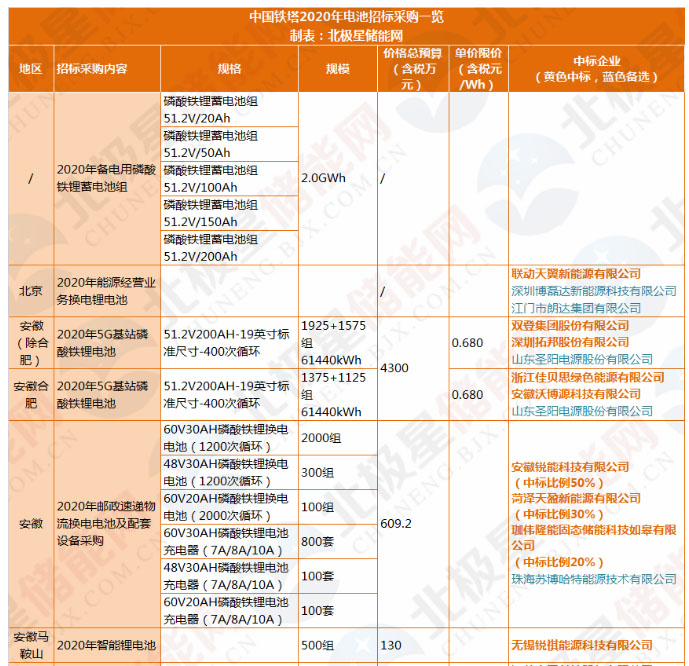 中國鐵塔2020年鋰電池招標采購一覽