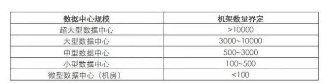同時(shí),按照機(jī)架規(guī)模,也可以將數(shù)據(jù)中心劃分為:超大型數(shù)據(jù)中心、大型數(shù)據(jù)中心、中型數(shù)據(jù)中心、微型數(shù)據(jù)中心(機(jī)房)等類型。