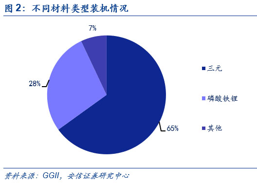 分材料類型看:1月三元電池裝機(jī)量為1.51GWh,占比65%;磷酸鐵鋰電池裝機(jī)量為0.65GWh,占比28%;錳酸鋰、鈦酸鋰等其他電池裝機(jī)量為0.16GWh,占比7%。