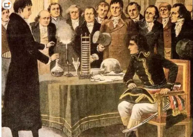 伏特向拿破侖展示伏特電堆