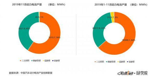 2019年1-11月累計(jì)來看,我國(guó)動(dòng)力電池裝車量共計(jì)52.5GWh,同比累計(jì)增長(zhǎng)20.4%。