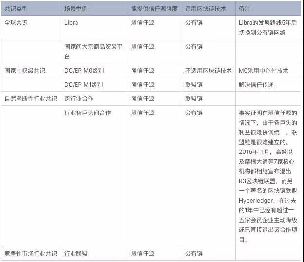 了解了區(qū)塊鏈中公有鏈和聯盟鏈的技術特點,我們可以分析一下各應用場景的適用技術: