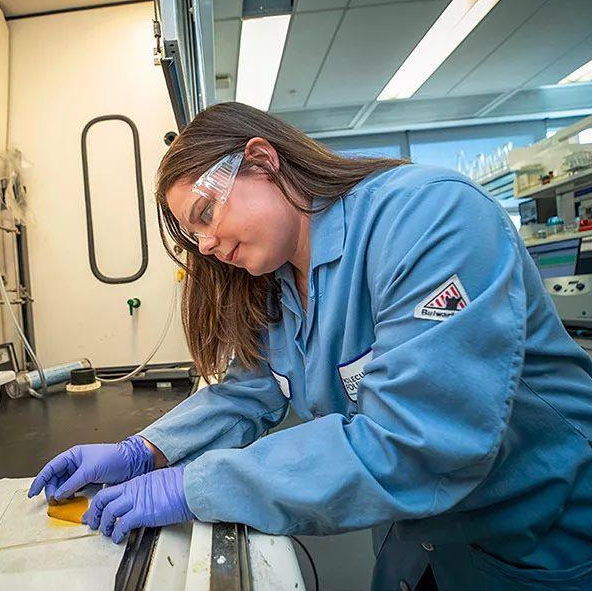 下圖所示:伯克利實驗室分子鑄造廠的研究生 Miranda Baran 在準(zhǔn)備 AquaPIM 樣本。