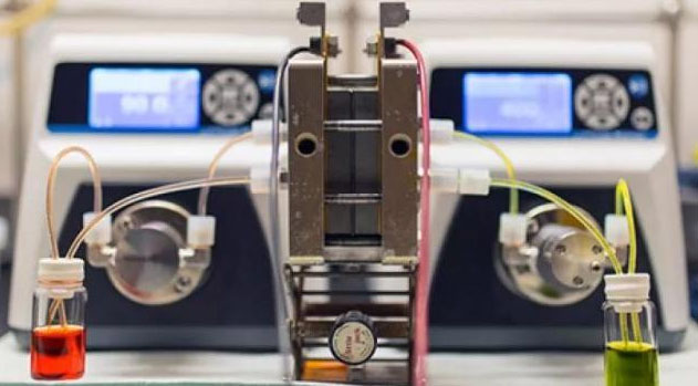 大多數(shù)柵極電池的化學(xué)物質(zhì)具有高度堿性的電極,一側(cè)是帶正電的正極,另一側(cè)是帶負(fù)電的陰極。但是,目前最先進(jìn)的隔膜是為酸性化學(xué)物質(zhì)而設(shè)計的,例如燃料電池中的氟化膜,但不適用于堿性流體電池。(在化學(xué)中,pH值是溶液中氫離子濃度的一種度量。純水的pH值為7,呈中性。從另一方面說,堿性溶液的氫離子濃度較低,因此具有較高的pH值,或者說pH值高于7。在堿性電池中,pH值可以高達(dá)14或者15。)