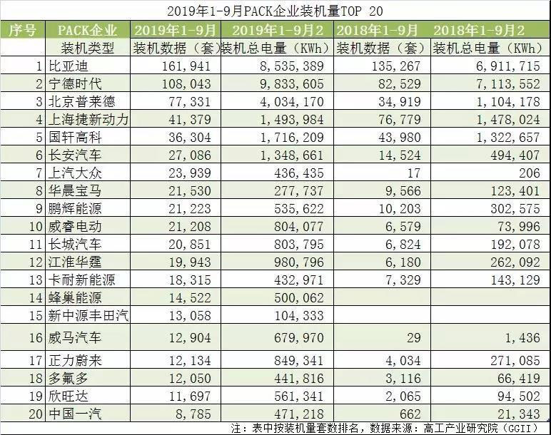 前三季度包括含電芯廠、主機廠和第三方PACK在內共有152家PACK實現(xiàn)裝機配套,較2018年同期167家減少15家。這其中42家為2019年新進入,另有57家PACK企業(yè)因2019年沒有裝機量慘遭淘汰,此外還有近60家企業(yè)裝機量不足百套。