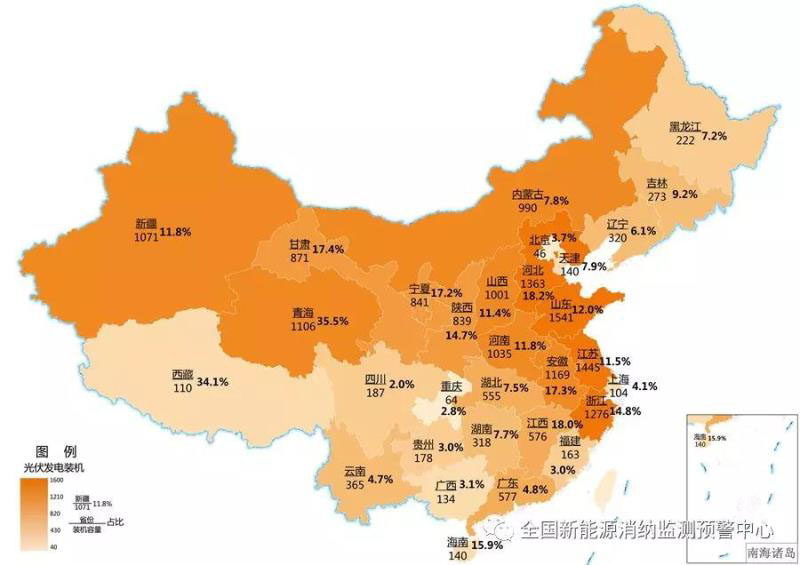 截至9月底各地區(qū)累計(jì)光伏發(fā)電裝機(jī)(萬千瓦)及占本地區(qū)總裝機(jī)比重