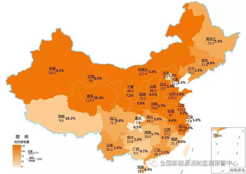 截至9月底各地區(qū)累計(jì)光伏發(fā)電量(億千瓦時(shí))及占本地區(qū)總發(fā)電量比重