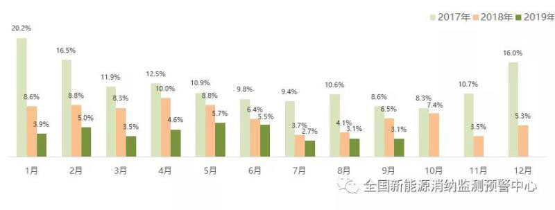 截至9月底全國棄風(fēng)率月度變化情況