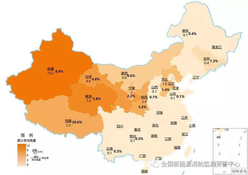 截至9月底各地區(qū)累計(jì)棄光電量(億千瓦時(shí))及棄光率