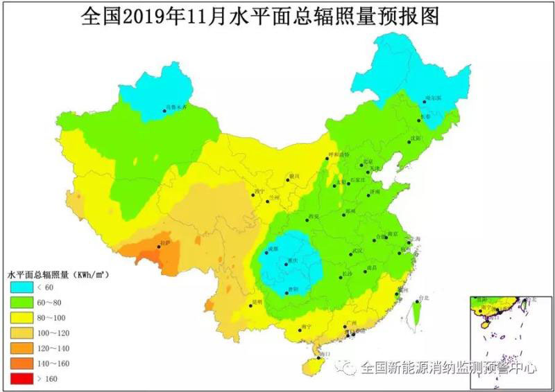 附圖4 全國2019年11月水平面總輻照量預(yù)報(bào)圖