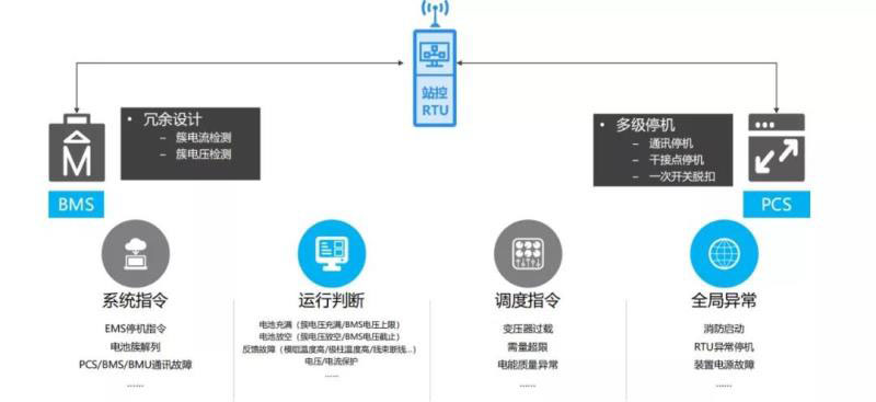 系統(tǒng)架構(gòu)方面:基于繼電保護裝置設(shè)計理念,庫博能源增加了RTU架構(gòu),該架構(gòu)位于BMS和PCS的上層,同時對各個子系統(tǒng)解耦,由RTU進行全面管理、控制和調(diào)度,達到高效協(xié)同的效果。