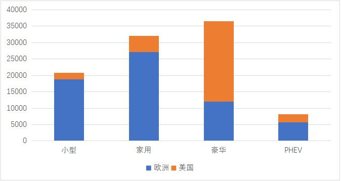 通過這種劃分來“取悅”消費者,如果我們按照歐洲、美國兩個主要市場進行拆分,以BEV和PHEV 3:1的劃分,可以拆分為: