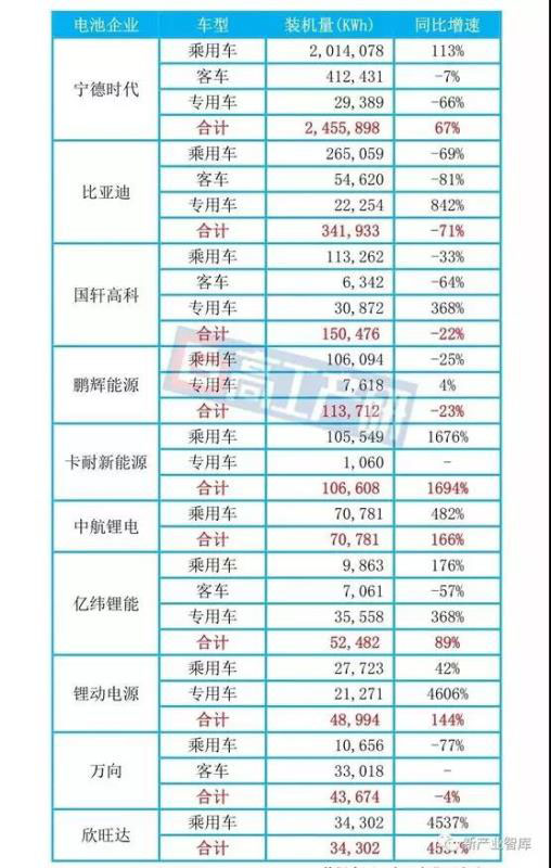 其中,比亞迪、國軒高科、億緯鋰能、鋰動電源的新能源專用車裝機電量分別同比增長842%、368%、368%和4606%。