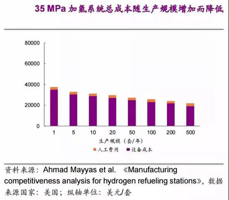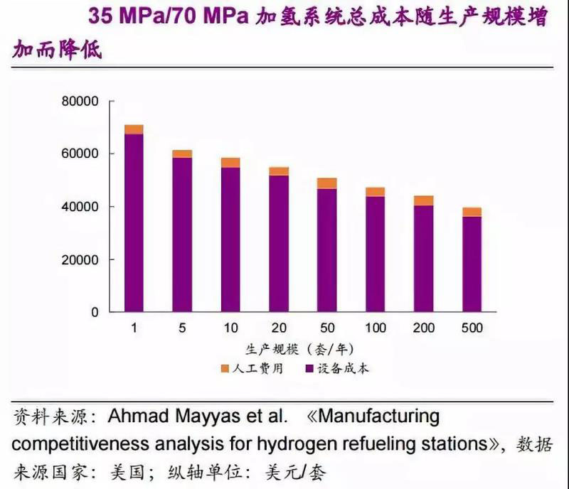 生產(chǎn)規(guī)模由10套/年增加到500套/年,加氫系統(tǒng)總成本可降低30%-35%。