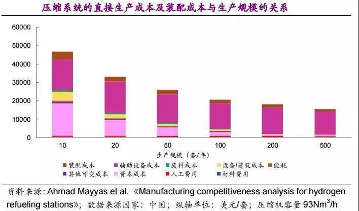 (2)核心部件直接生產(chǎn)成本降低的主要原因是由于隨著生產(chǎn)規(guī)模的增加,平均到每套壓縮系統(tǒng)的資本成本及設(shè)備/建筑成本明顯降低;