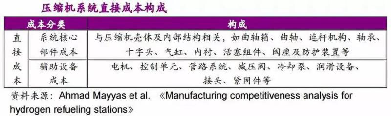 隨著生產(chǎn)規(guī)模的增加,輔助設(shè)備成本在總成本中的占比將超過直接成本,未來隨著需求的增加,針對不同參數(shù)壓縮系統(tǒng)的閥組、接頭、傳感器等輔助部件將趨于更加標準化、集成化的生產(chǎn)制造模式。