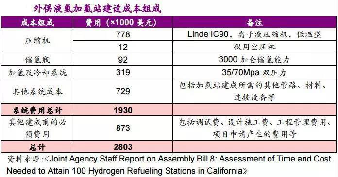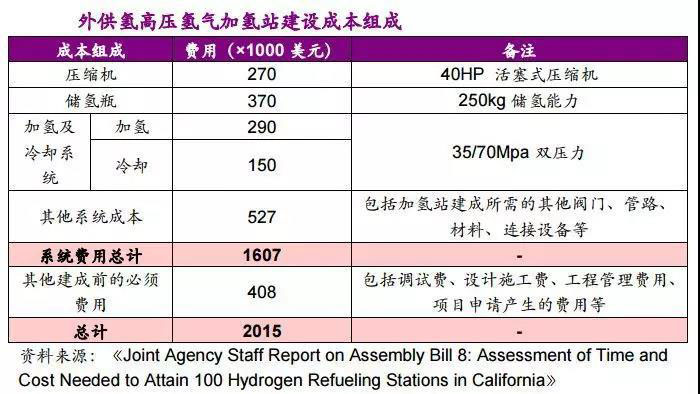 加州能源局的研究數(shù)據(jù)表明,該類型加氫站建成所需的與設(shè)備相關(guān)的費用約為160萬美元,考慮投入使用前所需的調(diào)試費用、工程設(shè)計費用、管理費用、建筑施工費用等其他費用,總成本將超過200萬美元。