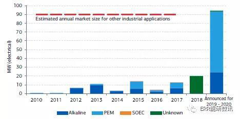 2010~2018年世界上各種新型電解池的使用情況